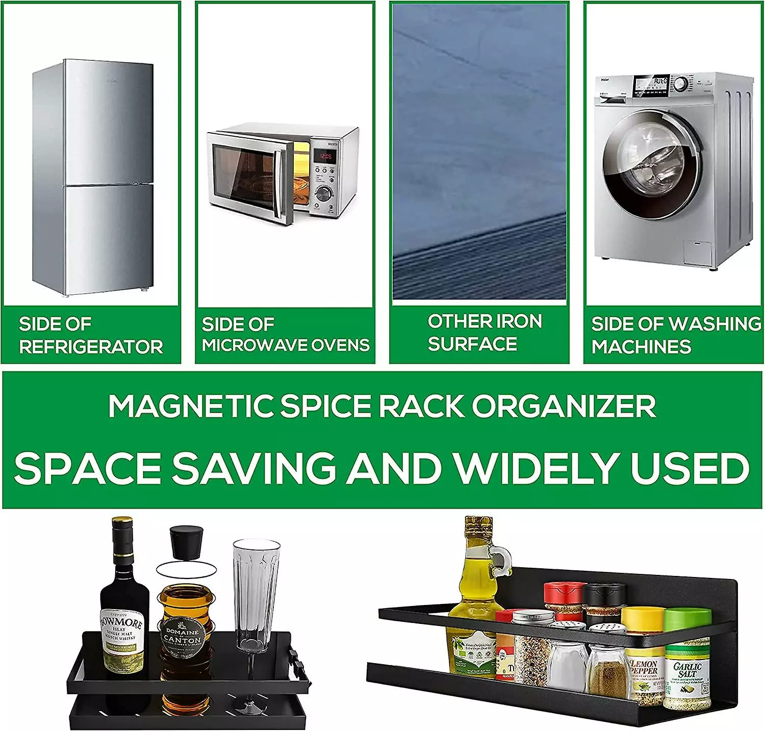 No Assembly Required, It’S The Easiest To Use. This Magnetic Shelf Easily Attaches To Any Iron Surface Or Wall. Say No To Puncturing Or Scratching Like Other Fridge Organizers, The Spice Rack Gets A Strong Magnetic Plate On The Back To Prevent It From Slipping.