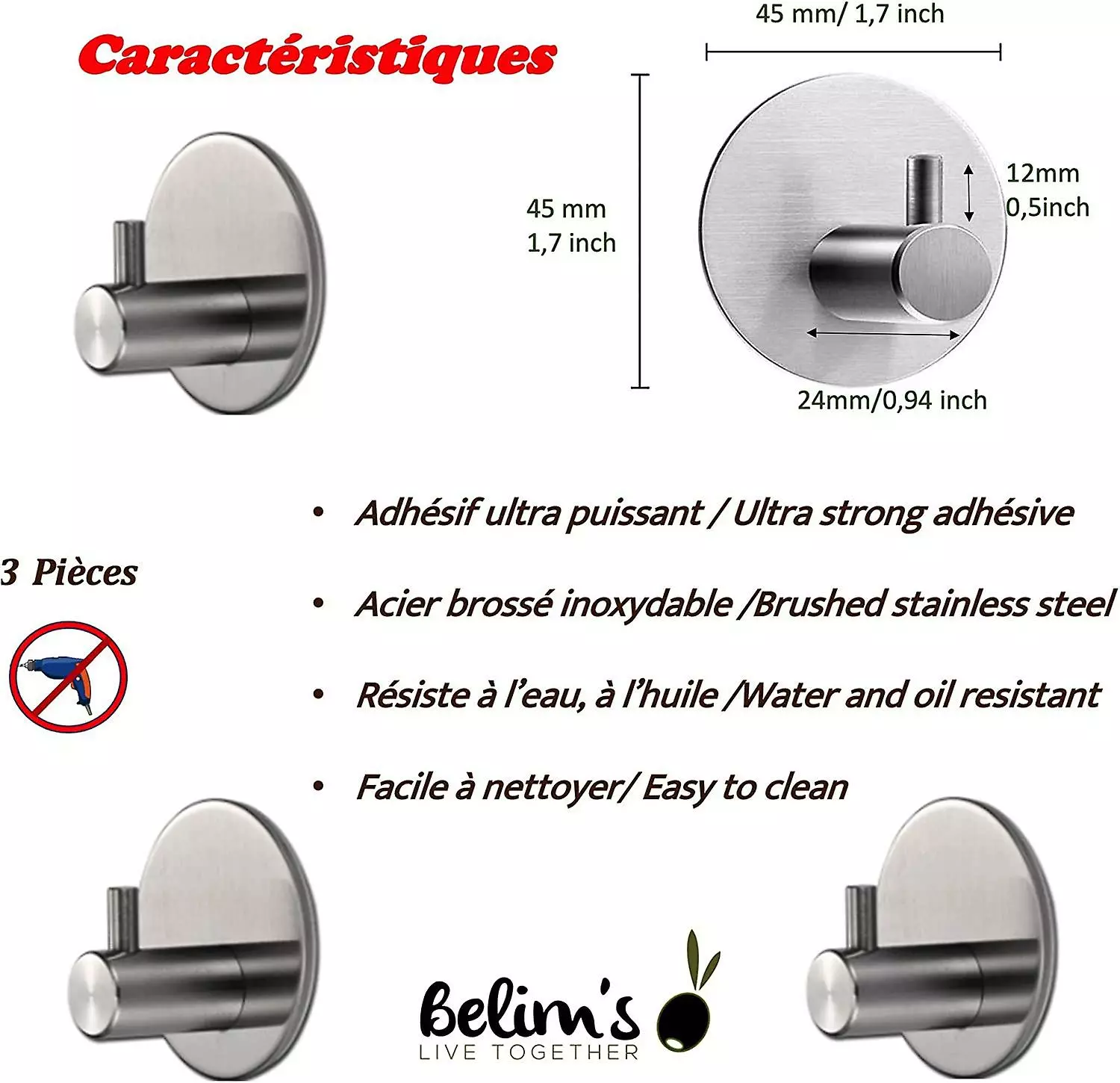 No Need To Drill And Damage Your Wall, This Self-Adhesive Hook Sticks Quickly And Permanently To A Clean, Smooth Surface