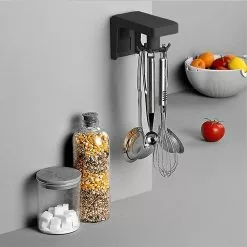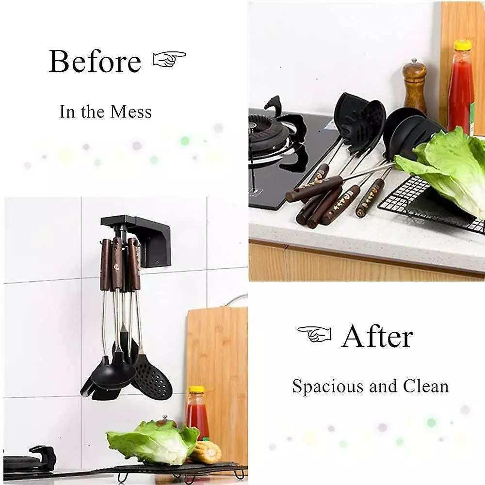 [Space Saving]: The Wall-Mounted Non-Porous Shelf Is Simple And Does Not Take Up Space. The 360 Rotating Design Is Easy To Carry, Rotate And Store. You Can Put The Rotating Hook Under The Cabinet To Keep The Kitchen Organized. It Is Also A Good Choice To Put It In The Bedroom Or Bathroom, Which Can Greatly Save Space.