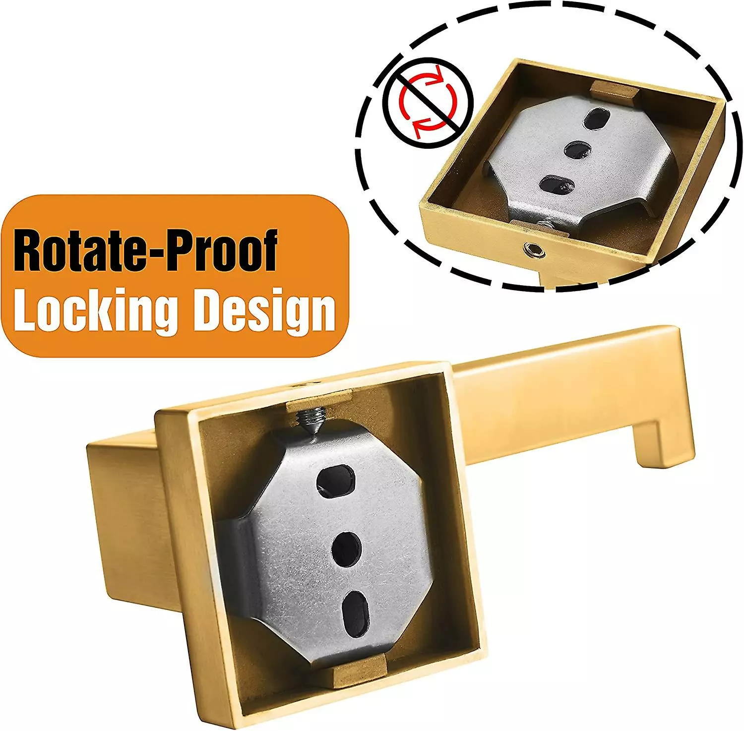 Rotation Proof: Our Brushed Brass Toilet Paper Holder Has A Unique Slot Design With Set Screws On The Holder To Prevent Rotation. No Wobbling Or Falling. Fashionable: The Modern Design Brushed Brass Finish Really Enhances Your Decorating Style. Horizontal Or Vertical Are Both Available For Mounting, Giving You The Chance To Make The Maximum Use Of Your Space.