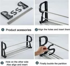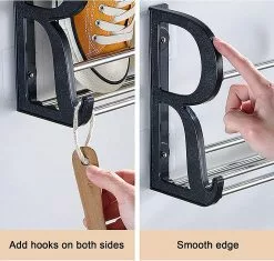Space Saving: Can Be Used Alone, The Larger Shoe Rack Can Hold Up To 6 Pairs Of Shoes And The Smaller One Can Hold 4 Pairs. There Are Hooks On Both Sides Of The Storage Rack, Which Takes Up Very Little Space.