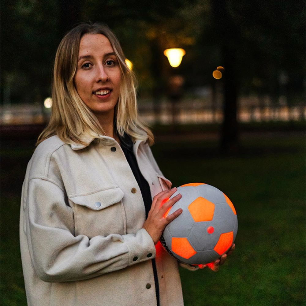 The two lights inside the football glow with a bright red light, which makes the football easier to see in the dark. The light-up football is perfect to take with you to the football field, the park or the beach and makes it great fun to keep on playing even after sunset.