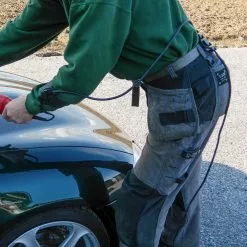 The cable holder works with all power tools and is ideal for both indoor and outdoor work. Simply insert the cord into the cable holder, and then secure the cable holder to your belt with the smart belt clip on the back. You can either let the cord run freely through the holder to give yourself additional leeway, or you can secure it in a lock position so that it is safely fastened in place.
