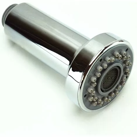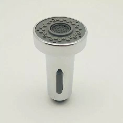 * Replacement or replacement spout head for kitchen sink mixer. * Push button for 2 spray settings: rain and bubbling style.