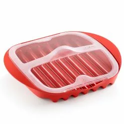 The tray’s ribbed bottom diverts the fat for healthier cooking, and the handy lid ensures that the fat won’t splash around and make a mess. Once the bacon is done, simply pour out any excess fat through the opening on the side of the tray.