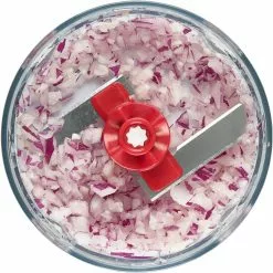 You can also chop pieces of ginger as well as coarsely chopped pieces of onion, pepper, cabbage, tomato, and other soft ingredients. A good tip is to load several raw materials at the same time into the chopper. Add the ingredients you want to chop, turn the chopper, and serve. Perfect if you want to make guacamole or a hot salsa for your tacos.