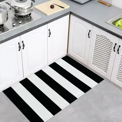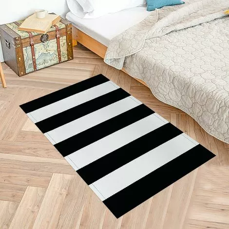 The black and white striped rug is designed for indoor and outdoor use. It is a good choice for kitchen, living room, bedroom, bathroom and entryway. You can use the mat as you like. Size information: The striped rug measures 60 x 90 cm. You don’t have to worry that our size rug is too small for your room.
