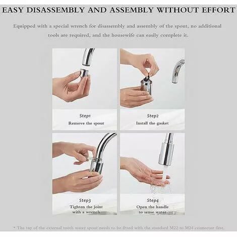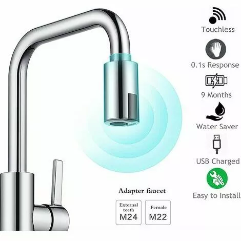 Smart nozzles: M24 male and M22 female tap nozzles. The touchless faucet adapter turns your ordinary kitchen faucet into a smart automatic faucet with motion sensor.