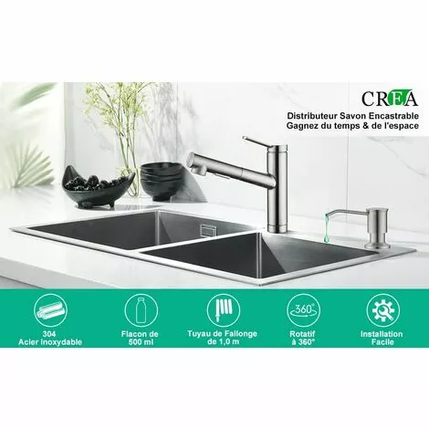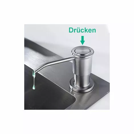 DescriptionType: built-in soap dispenserMaterial: stainless steelSurface: matt blackCan be filled from aboveFilling volume: 500ml bottle1.0m extension hose360° rotating nozzlePractical dust filterCAN BE FILLED FROM TOPThe soap dispenser can be well filled from above. Simply remove the pump head, pour soap from the top, and reinsert the pump head. There is no need to remove the bottle. HAS A LONG SPOUT The swivel spout with a 76mm projection pumps well and extends from the hole to the sink, so no soap drips onto the shelf beside it tap, but in the sink, if at all.