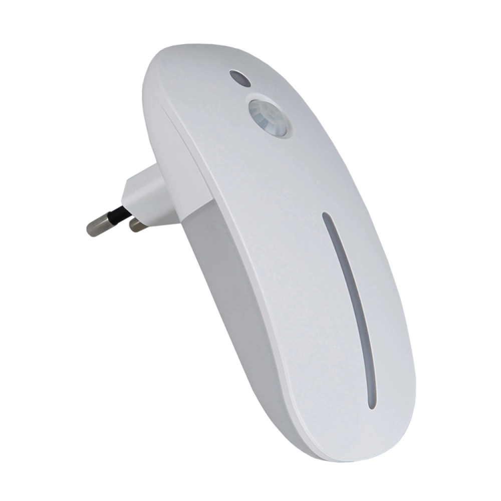 The night light is plugged straight into the wall socket and has both a motion and a light sensor. Switch between two settings on the back of the night light.