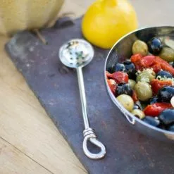 The olive spoon can of course be used for more than just olives. It’s great for pickles, marinated artichoke hearts, capers, jalapeños for tacos and many other delicious delicacies.
