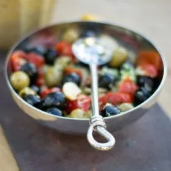 The stainless steel olive spoon is dishwasher safe and the neatly designed knot on the back also provides a handy little loop to hang the spoon from.