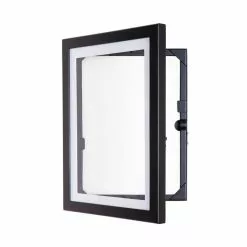 The open-up frame comes in A3 and A4 format and you can choose between white, black or wood. Screws and a wall bracket are included with both sizes. The A4 frame comes with a small stand.