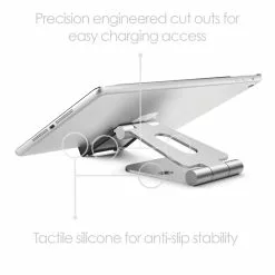 A practical and sturdy stand designed for both your mobile phone and tablet. Can be used on any type of surface and adjusted to any angle. Easy to fold and bring with you on the go.