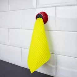 The Pluring holder is ideal for hanging dish cloths or towels. Simply push one corner of the towel into the holder. The pointed rubber interior clamps down on the towel to make sure it stays.