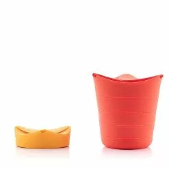 The bowl is made of soft silicone and lets you use regular popcorn kernels in the microwave without the need for any added oil, butter or other types of fat. It is also faster to use the microwave compared to making the Popcorn in a pot or pan.