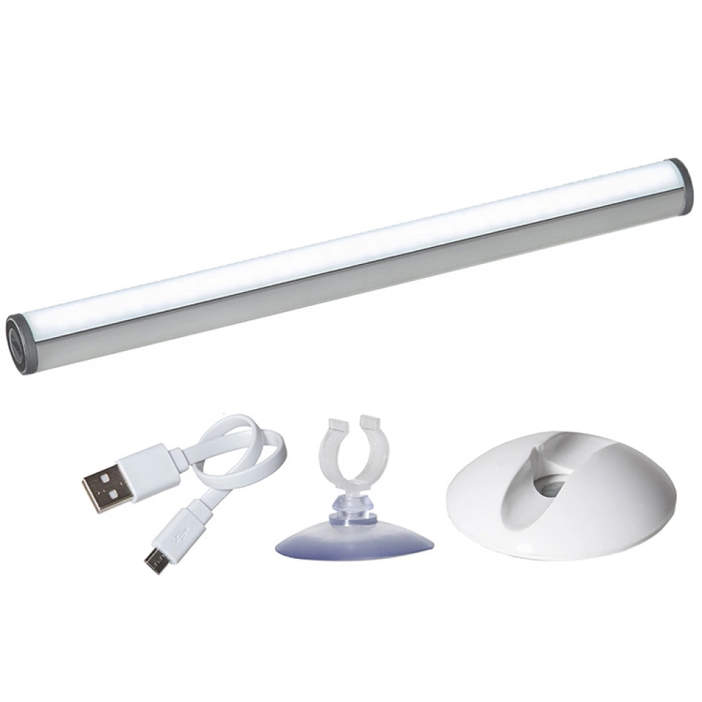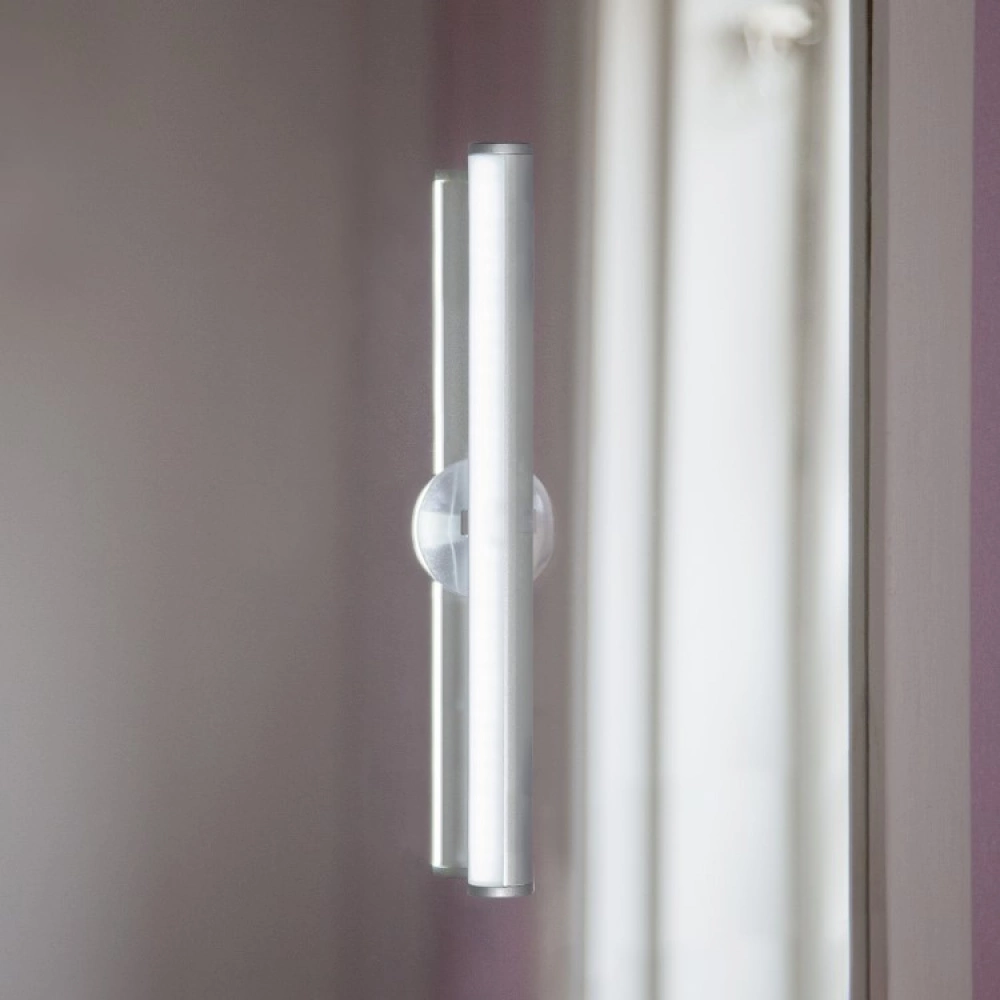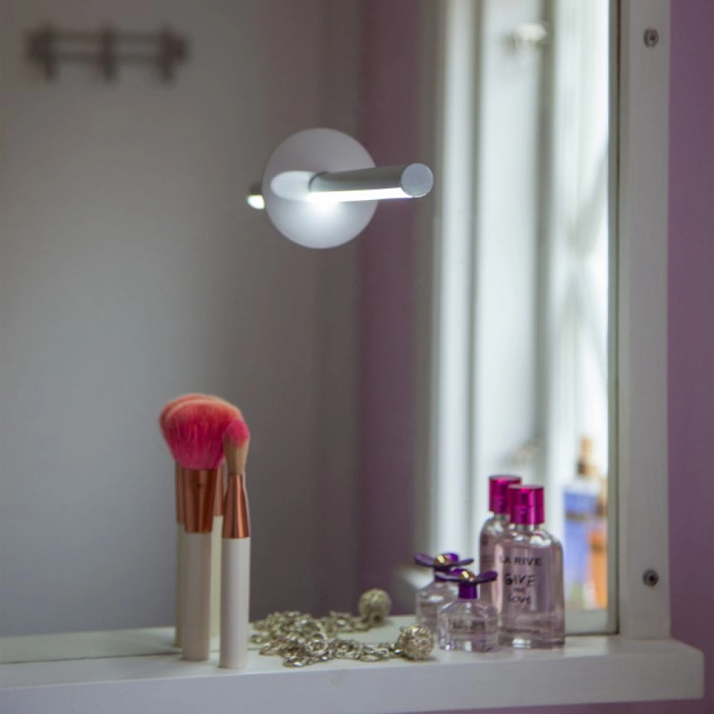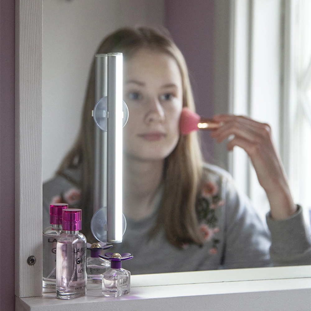 The light is easy to bring with you in your bag and place onto any mirror you desire with its sturdy suction cups or you can let it stand on its own on a table. The light has three different brightness levels and can be dimmed by just pressing the button on the side.