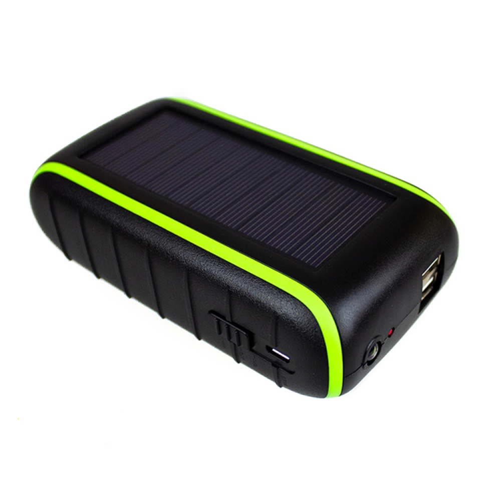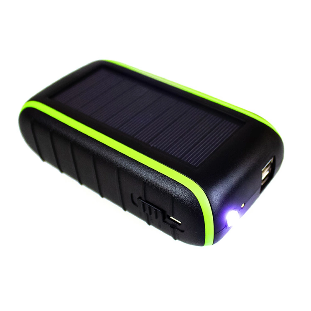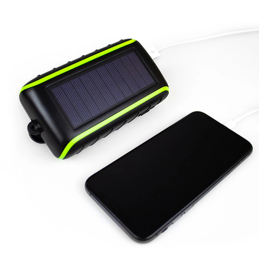 The power bank can be charged via the sun, your own muscle power or using the micro USB cable included in the package. The rechargeable battery is 8,000 mAh, which is enough to charge a smartphone four times or to charge two phones at once using the two USB outputs.