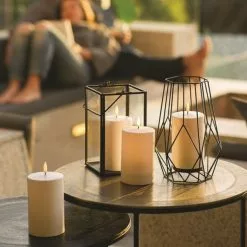 The Premium LED block candle for outdoor use is a nice mood light with a patented 3D flame that shines with a very realistic glow. The battery-powered candle creates a cozy atmosphere on the patio or balcony and the energy-efficient flame provides over 1000 hours of burning time.
