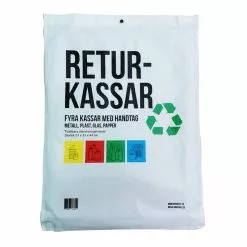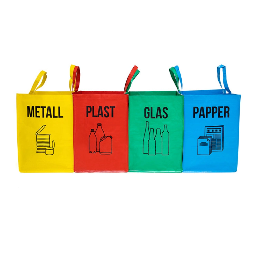 These recycling sorting bags are washable and easy to take to the recycling centre for emptying. The 4-pack comes in green, yellow, red and blue, each with the respective text: glass, paper, metal and plastic.