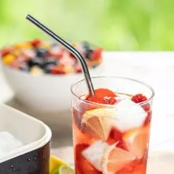 A reusable metal straw is a useful and eco-friendly alternative to normal plastic straws. The metal straws can be used over and over again, and will always be available at home for you to drink out of!