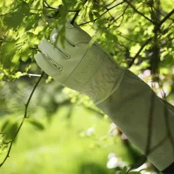 These comfortable and sturdy rose gloves from Hestra protect both your hands and your arms when gardening. The gloves are made of durable goatskin and have long cuffs of cow leather that protect your forearms against sharp thorns and twigs.