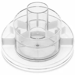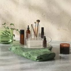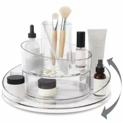 The rotating make-up organizer is made of transparent acrylic plastic, which makes it easy to see what you have.