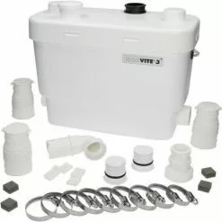 Ideally suited to a kitchen or utility room, the Sanivite+ powerful pump has four inlets for connection to domestic sinks and appliances. With compact dimensions, Sanivite+ can be concealed in a kitchen unit or behind a demountable panel to give access for servicing. This model is designed to plough through even the toughest of waste from the kitchen or utility room. Sanvite+ is constructed from a high-tech pressure chamber that will stop and start the unit and the motor, which then activates the pump. When the water from your appliances enters the Sanvite+, it starts up the motor within the chamber, this then drives the blades which mash up the waste into pure liquid and eventually is pumped into a drainage system.