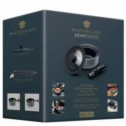 Smart saucepan set with three space-saving saucepans in different sizes that can be stacked together. The pans are 16 cm, 18 cm and 20 cm in diameter and can be used for everything from cooking sauces, stews and casseroles to boiling potatoes and pasta. The pan set comes with a removable handle and a universal lid that fits all three pans.