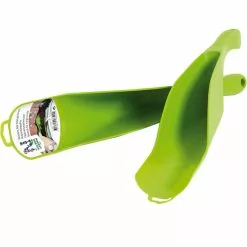 The scoop is made of robust plastic and has a strong, useful handle. The front of the scoop is slightly flexible. This means that when you angle the scoop a little steeper, the front part lies flat against the bottom of the gutter, giving you a wider collection area.