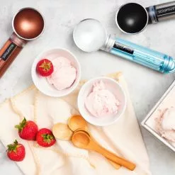 Using just the warmth of your hand, a liquid core transfers the heat to the head of the scoop. The gentle heat makes it much easier to spoon the ice cream, shaping it into a perfectly round ball with every scoop.