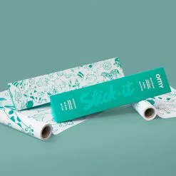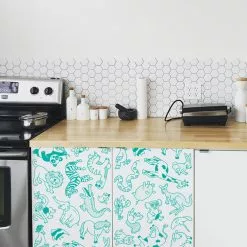 The self-adhesive wallpaper is 5 metres long and 30 cm wide. The self-adhesive paper can be cut to fit the surface and can be displayed both vertically and horizontally. The water-based adhesive adheres best to smooth and durable surfaces, such as kitchen doors, refrigerators and doors.