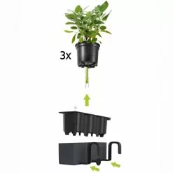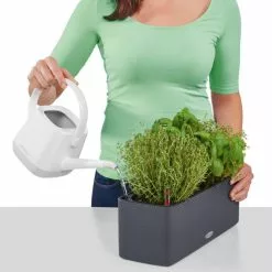 With the self-watering balcony box, it’s easy to make your own little garden of spices, herbs and flowers. The inner box of the balcony box has room for three small growing pots and the smart self-watering system ensures that each plant is provided with just as much water as the plant needs.