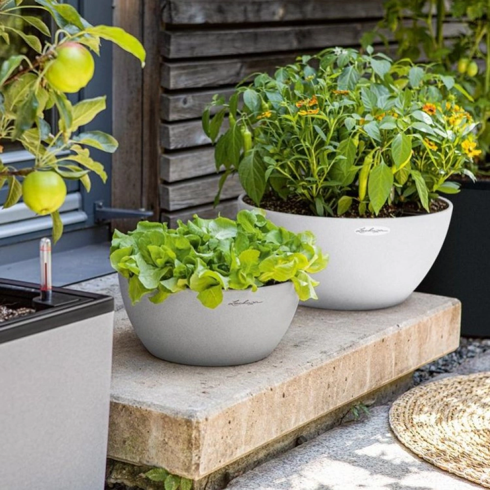 Lechuza’s round, self-watering pot is a wide pot with an integrated water reservoir and water indicator for planting and growing in both indoors and outdoors. The round shape invites you to plant beautiful summer flowers and greens as well as grow fresh, fragrant herbs that can be used in cooking.
