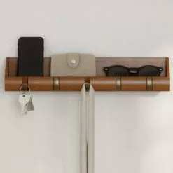The fold-out hooks are easy to fold down when you need to hang something up. Just flip down the hook you want to use with your finger and hang your jacket and bag. When you no longer need the hook, just fold it back into the shelf.