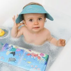 Fit the shower shield to your child’s head with a velcro strap that you can adjust to fit perfectly. The shield directs water away from your child’s face so they don’t get water, shampoo or soap in their eyes. Perfect for using on the beach or by the pool as sun protection.