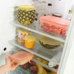 With the elastic silicone lids, you can easily cover the food in lunchboxes, bowls, and cans. The silicone lids help to protect the food, minimize the smell in your fridge, and makes it easier to staple things on top of each other in the fridge.