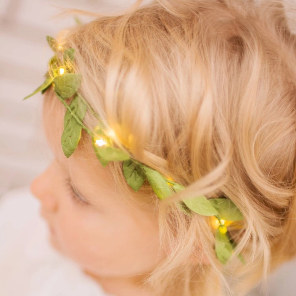 This small and neat string light with small green leaves is nice to decorate your table with or wind up and use as a wreath in your hair. The battery-powered lamps are spread out among the winding leaves, and when you turn the lights on, they shine with a warm and white glow.