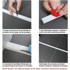 just wipe it with a damp cloth. - Wide Uses: The Water Barrier can be stuck to almost any smooth surface including walls, floors, tiles, etc. The self-adhesive shower pad can block the water on the countertop from the flow and prevent the