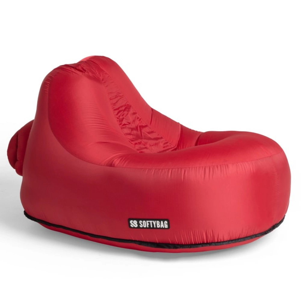 Softybag’s inflatable high chair can be inflated both indoors and outdoors. You don’t need to use your lungs or a pump and you can stand still while filling the Softy Bag. You don’t have to rely on the wind either, all you need is a few metres of free space sideways so you can sweep the Softybag back and forth across the room.