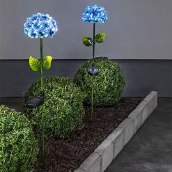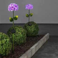 This pretty solar cell flower is attached to a practical stick and has plenty of cute LED diodes that start shining as soon as it gets dark. The flower looks like a hydrangea and is easy to stick into your flowerbed and will be a great addition to your other flowers, trees and bushes.