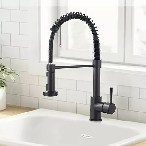 [Adjustable Sink Faucets] It is a kitchen faucet with 2 spray modes. By simply pressing a button, the water dispenser can switch from spray mode to shower mode, so that food or dishes can be washed comfortably [High quality] Bathroom faucet is made of brass and is therefore lead-free and rust-resistant [Easy to Use] Kitchen Faucet Pull-out Spray, You can pull the spray up to 40cm, which can maximize the radius of action around the sink. 360° rotatable sink faucet, perfect for your single or double bowl sink, easy to turn to the other bowl, then you conveniently wash every corner of the sink. [Easy to install and install Maintain] – The standard 3/8″ connection can be connected to all standard hot and cold water systems The water hose is pre-installed in the kitchen faucet to reduce installation difficulties Excellent chrome finish prevents rust and corrosion Copper fittings to ensure long life