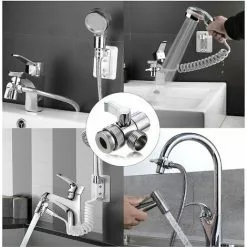 3 Way shower diverter diverter suitable for connecting ordinary shower hose, toilet hoses, water inlet hose, sink faucet, etc. After installation, it can be connected to water supply systems such as dishwashers, washing machines, shower nozzles, etc.