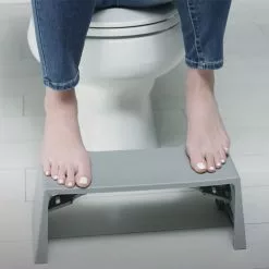 The collapsible toilet stool is made of recyclable polypropylene. It’s easy to clean with your normal bathroom cleaner and a soft cloth.
