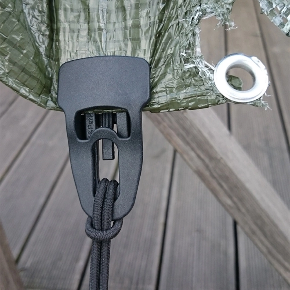 The tarpaulin clips can be used on several different kinds of material and are perfect for covering cars, boats, construction or garden work, if you are camping, etc. Since the clips are attached to the edge of the tarpaulin, they can also be used on tarpaulins that have broken eyelets.