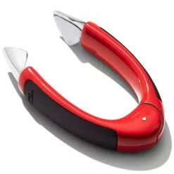 The durable strawberry huller’s metal blades are made of stainless steel. You can wash the strawberry huller in the dishwasher after use.