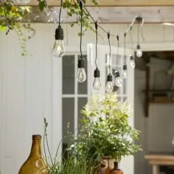The string lights has 10 powerful light bulbs hanging down that gives you a little bit of extra light during parties and evenings in your garden. The string light is beautiful to hang on the patio or your balcony but can also be hung in a tree or a party tent with the help of some cords.