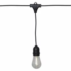 The 10 light bulbs are placed with 40 cm space in between and hangs down 33 cm from the string. The string is 3,6 m long and has a power cord that is 5 m long which allows you to easily plug the string lights into a suitable outlet.
