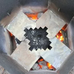 4. Mount the stump chimney. Adjust the number of metal sides to the diameter of the stump and make sure that you also fit briquettes around the sides of the stump.