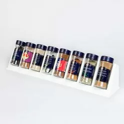 The spice stand is available in several different colours and is made of shock resistant Polystyrene plastic.